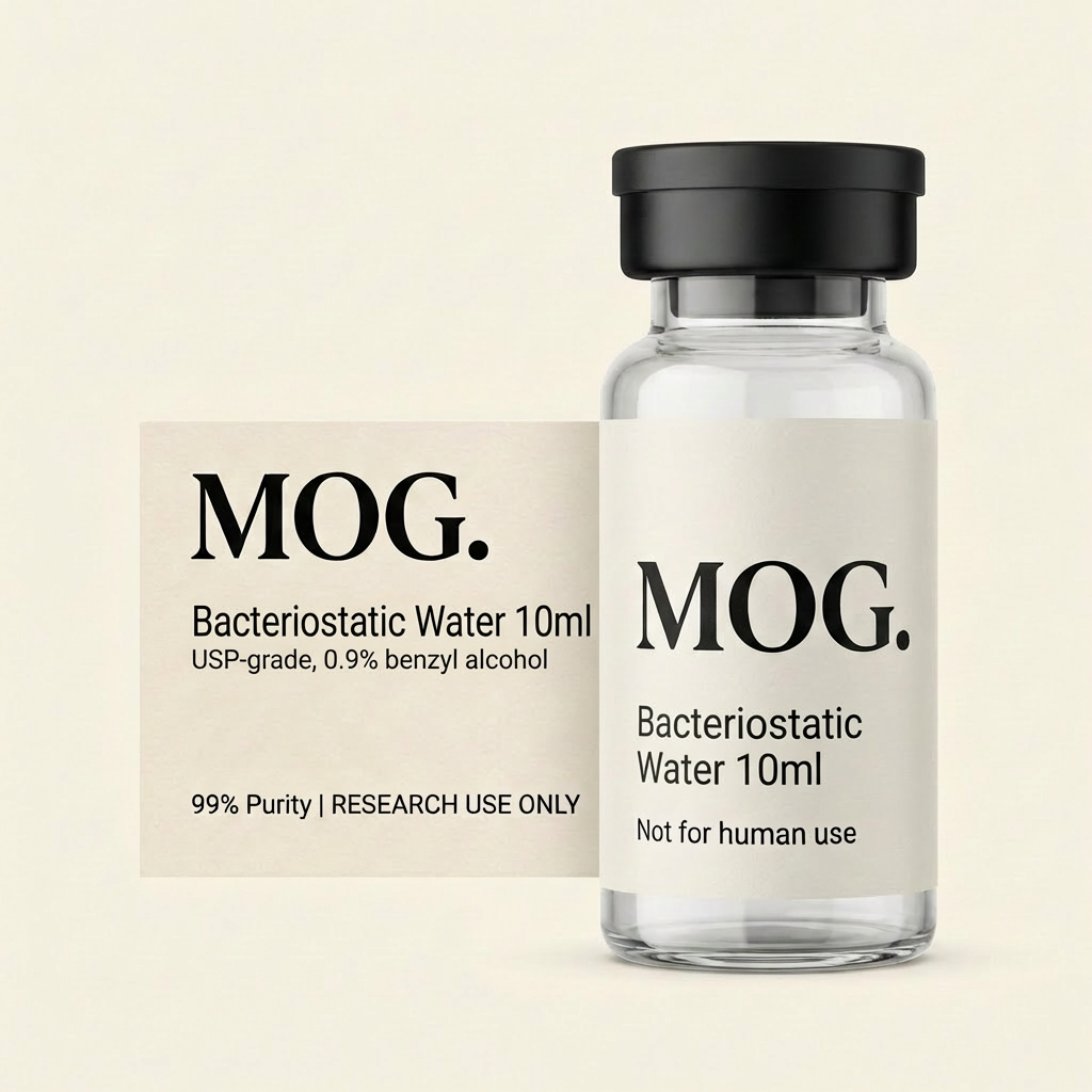 USP-grade bacteriostatic water for reconstitution of lyophilized research compounds. Contains 0.9% benzyl alcohol as a bacteriostatic preservative. Each vial contains 10ml. Essential for proper preparation of peptide research solutions.